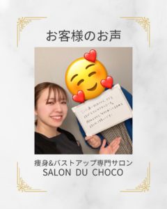 痩身&バストアップ専門サロンSALON DU CHOCOではゼロからバストを作り上げるオリジナルの美胸、育乳メソッドでお身体作りをサポートします。