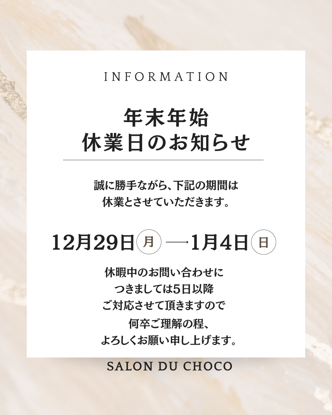 年末年始お休みのご案内