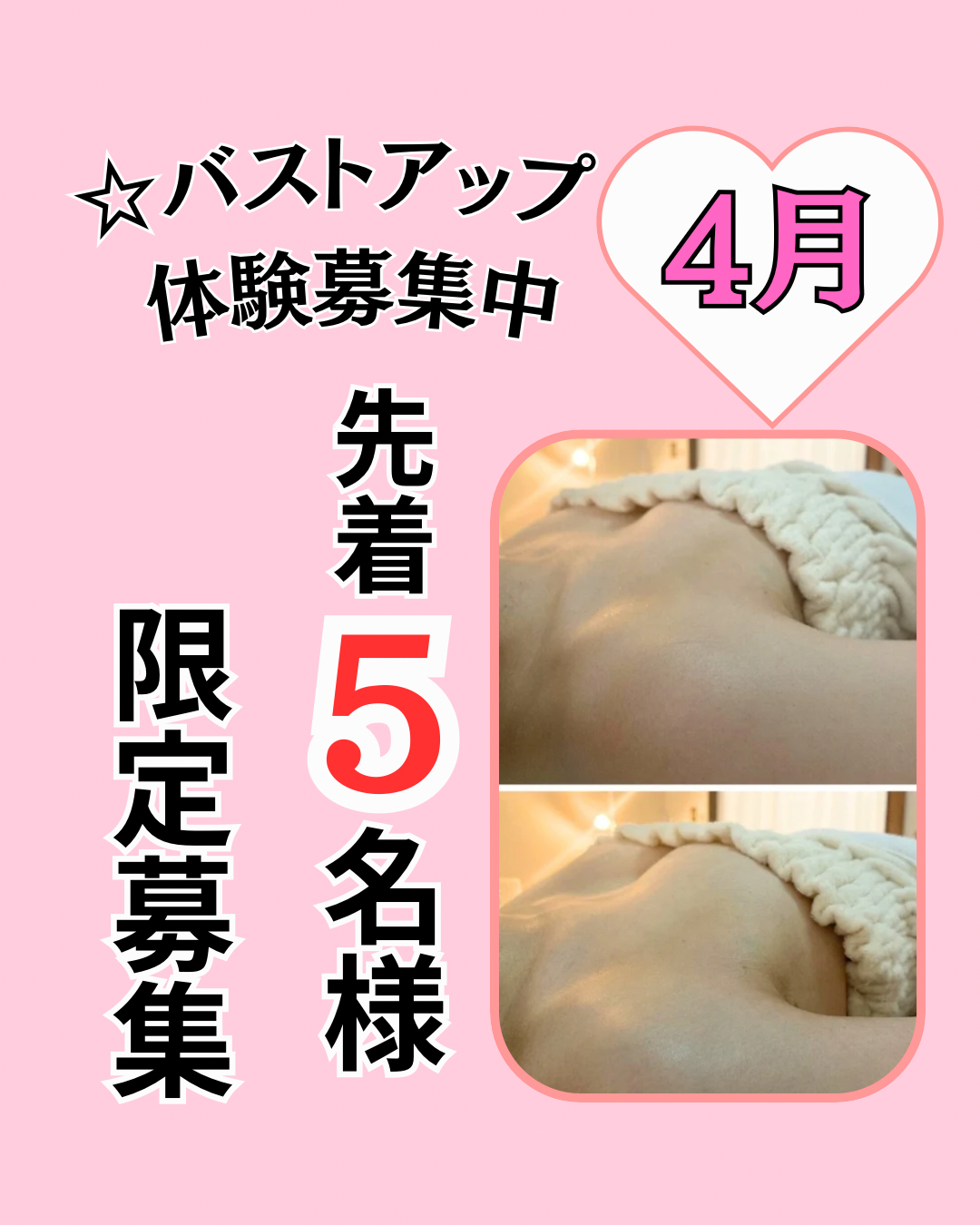 バストアップ体験5名様限定4月募集スタート